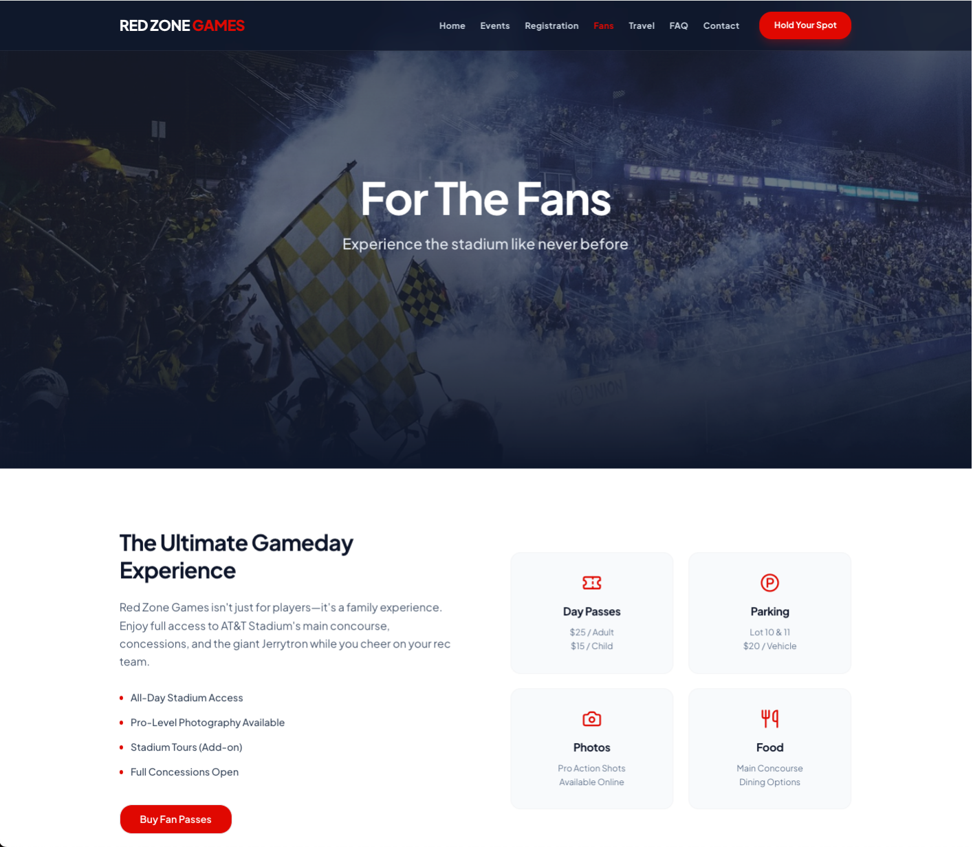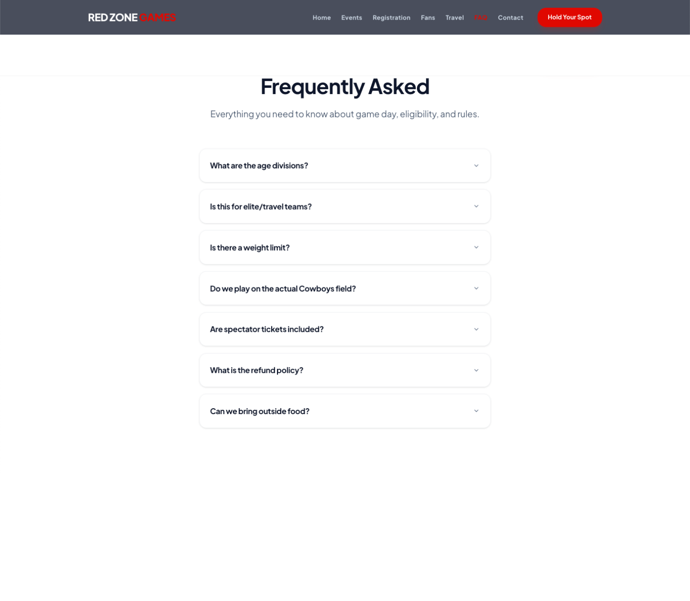 With additional time, I would expand the site to include event-specific landing pages and deeper informational resources tailored to both teams and families.